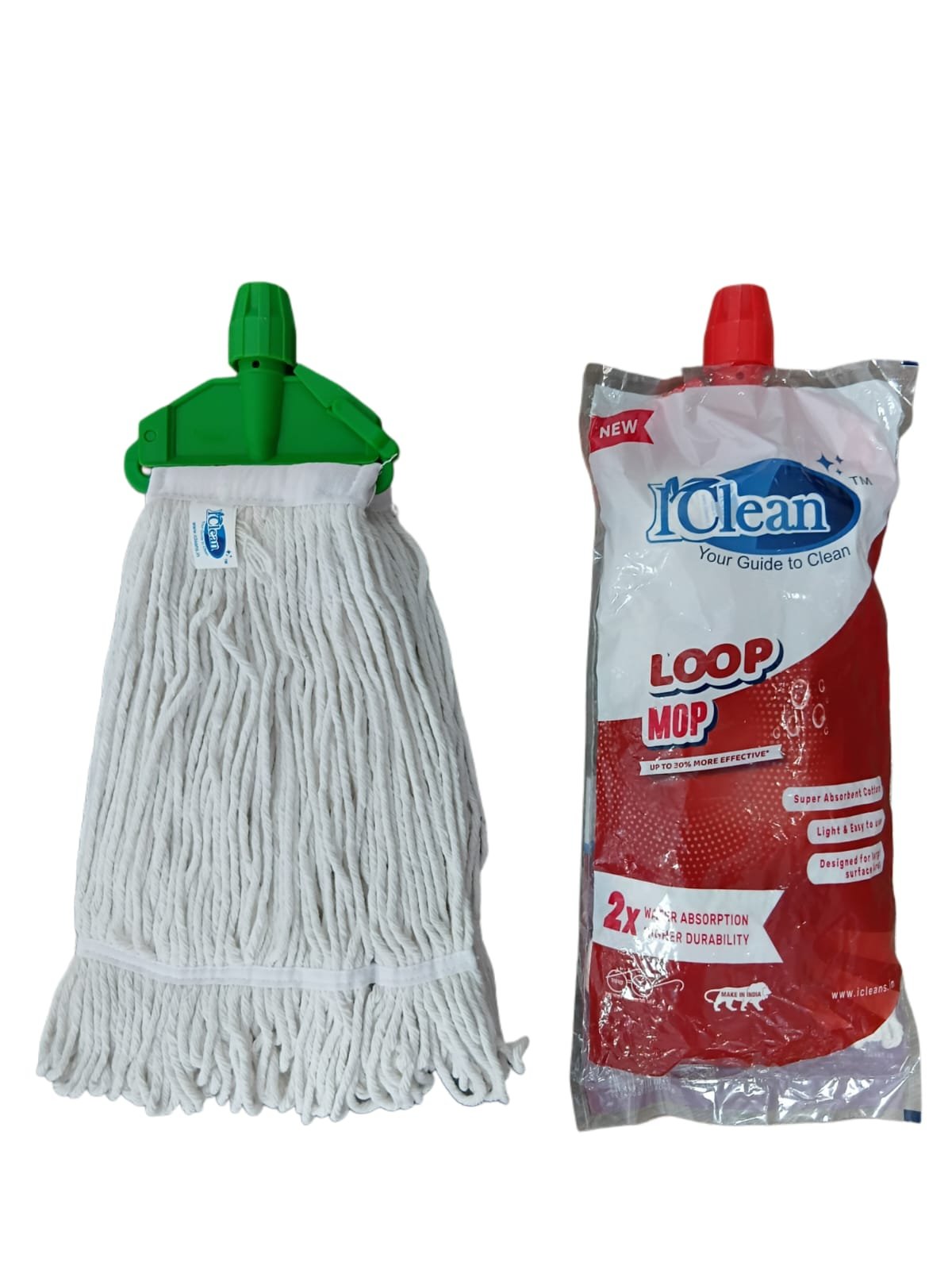 The iClean Cotton Loop Mop is a durable and highly absorbent mop head designed for efficient and hassle-free cleaning. Made from premium cotton fibers, it offers excellent water retention and effective dirt removal while being gentle on all floor surfaces. The loop-end design prevents fraying and ensures long-lasting performance, even with regular use. Equipped with a sturdy clip fitting, it allows quick and secure attachment to compatible mop handles. Ideal for homes, offices, and commercial spaces, it provides a reliable and cost-effective cleaning solution.
