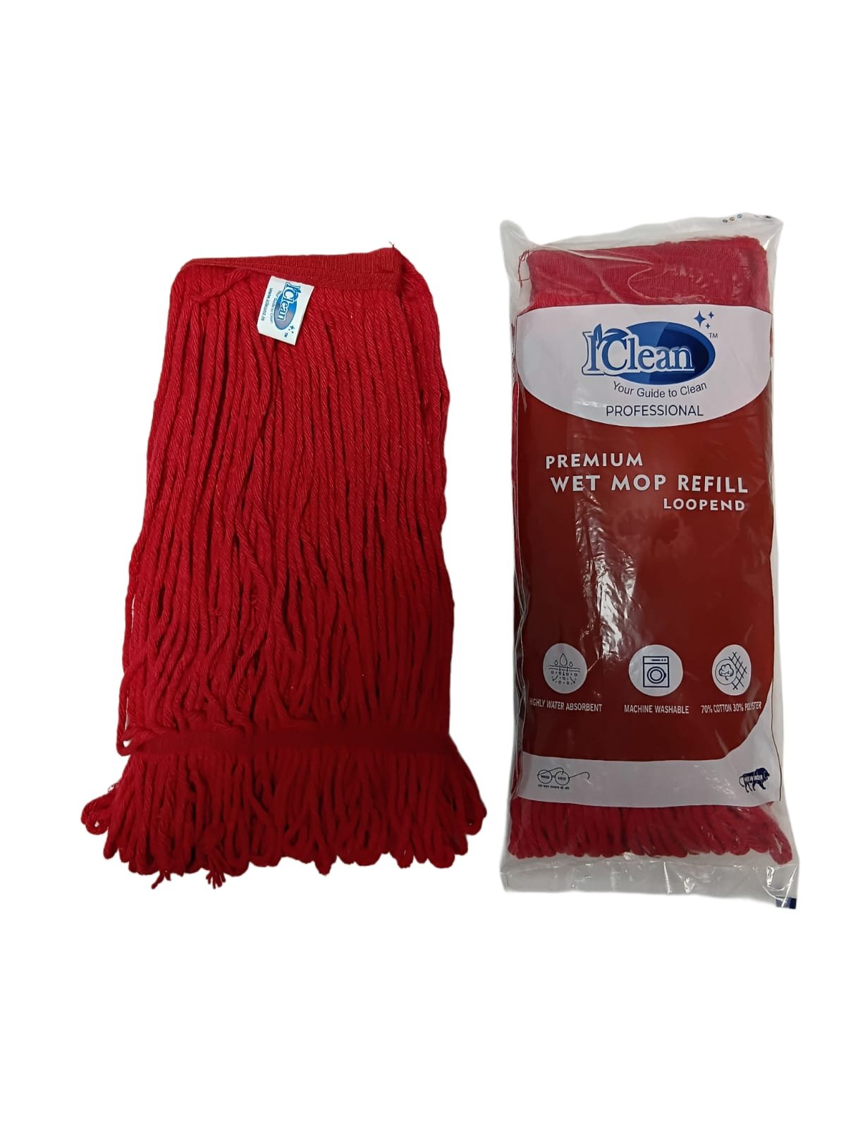 The iClean wet mop refill loop-end red color is a high-quality cleaning accessory designed for effective and hygienic floor maintenance. Made from durable, highly absorbent cotton fibers, this mop refill quickly removes dust, dirt, and liquid spills, leaving floors clean and streak-free.